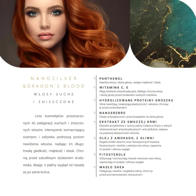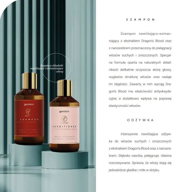 Szampon nawilżająco-wzmacniający, stworzony specjalnie dla włosów suchych i zniszczonych. Nasz produkt zawiera ekstrakt Dragon’s Blood, który nie tylko działa antyoksydacyjnie, ale także poprawia elastyczność włosów. Dodatkowo, nasz szampon zawiera nanosrebro, które oczyszcza, wygładza strukturę włosów i dodaje im objętości. Dzięki tej unikalnej kombinacji składników Twoje włosy będą nawilżone, silne i pełne życia.